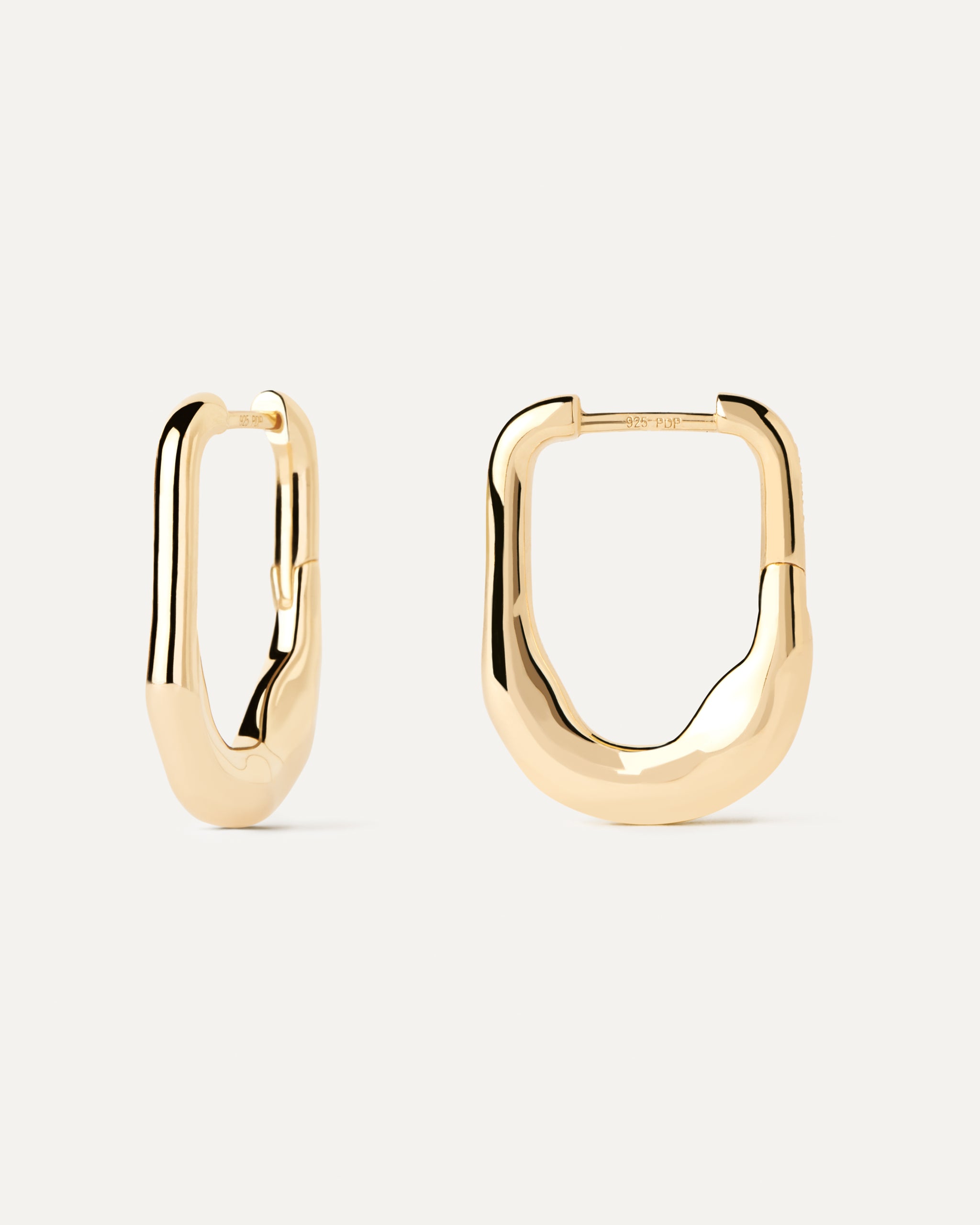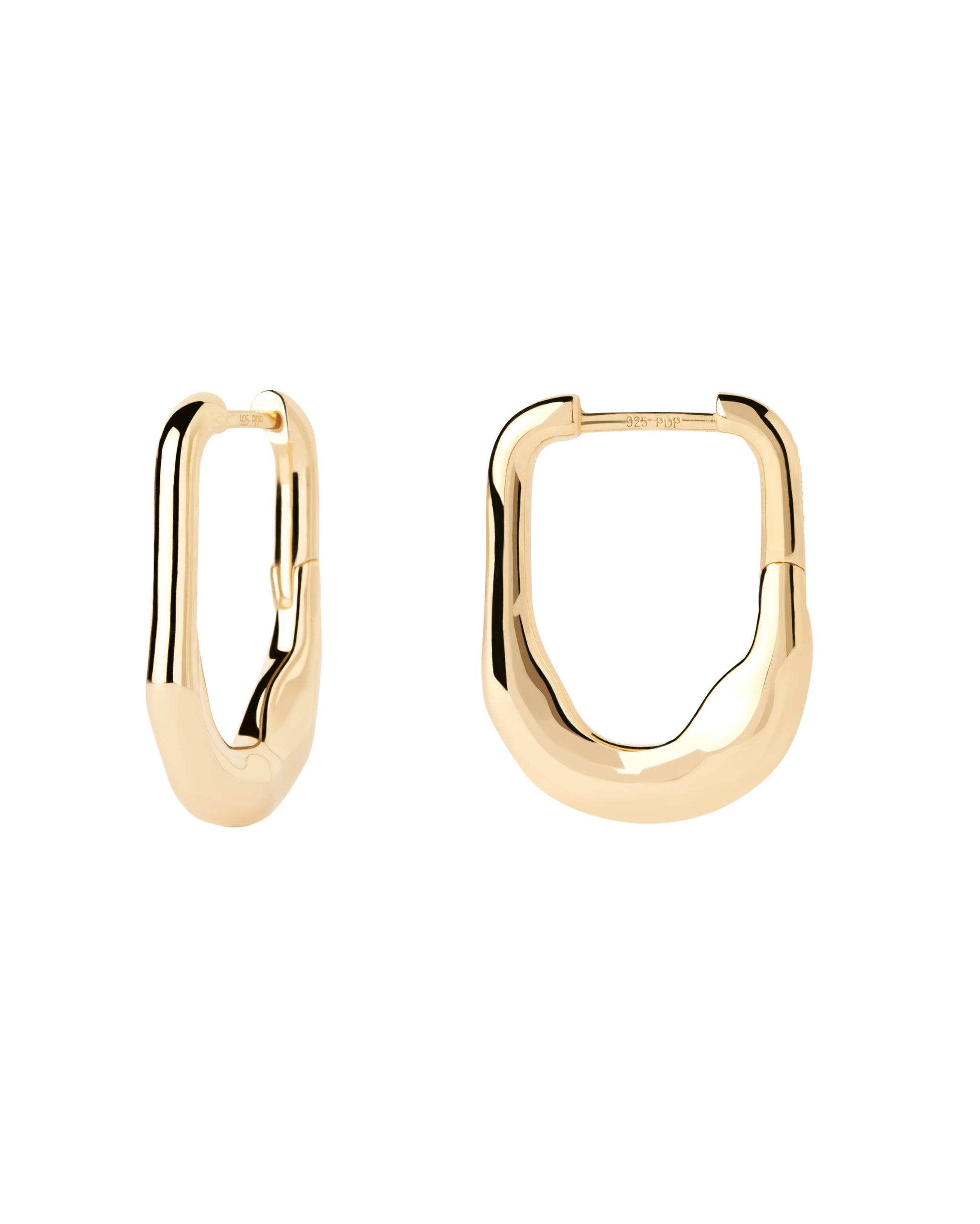 These organically shaped hoops take you from day to night, with their soft golden glow and smooth edges, these quirky take on a classic that you can wear daily.