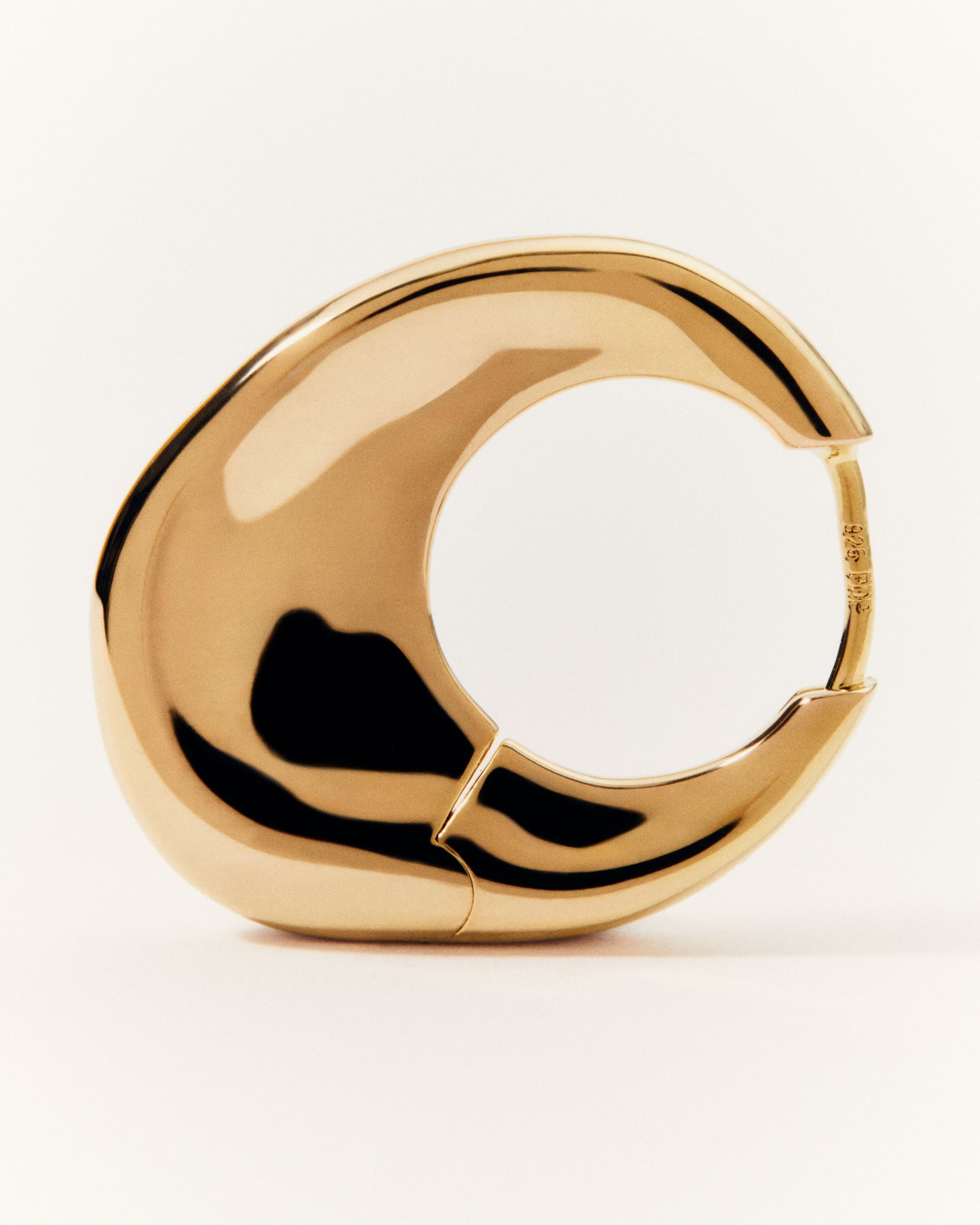 These organically shaped hoops take you from day to night, with their soft golden glow and smooth edges, these are statement hoops you can wear daily.