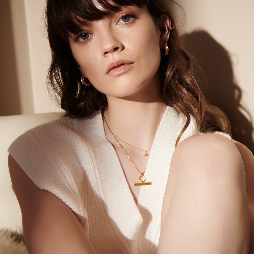 Rachel Jackson | Ridged T-Bar 22ct Gold Plated Necklace