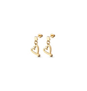 18K gold-plated earrings with a nailed heart design and a nut clasp. Earrings made in Spain under a meticulous handcrafted process. The heart symbolises love and the nail symbolises the pain that we sometimes experience in relationships.