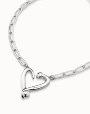 The Nails and Hearts necklace has a design of fine nail-shaped links linked together with a medium-sized heart in the center. Entirely handmade in Spain with adjustable clasp. The Loved collection is represented by the heart and the nail.